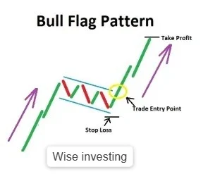 In bullish flag pattern the price action rises and then declines. The breakout may not always have high volume surge, but analysts and traders prefer to see one because it shows how the investors and traders have entered the stock with new enthusiasm.